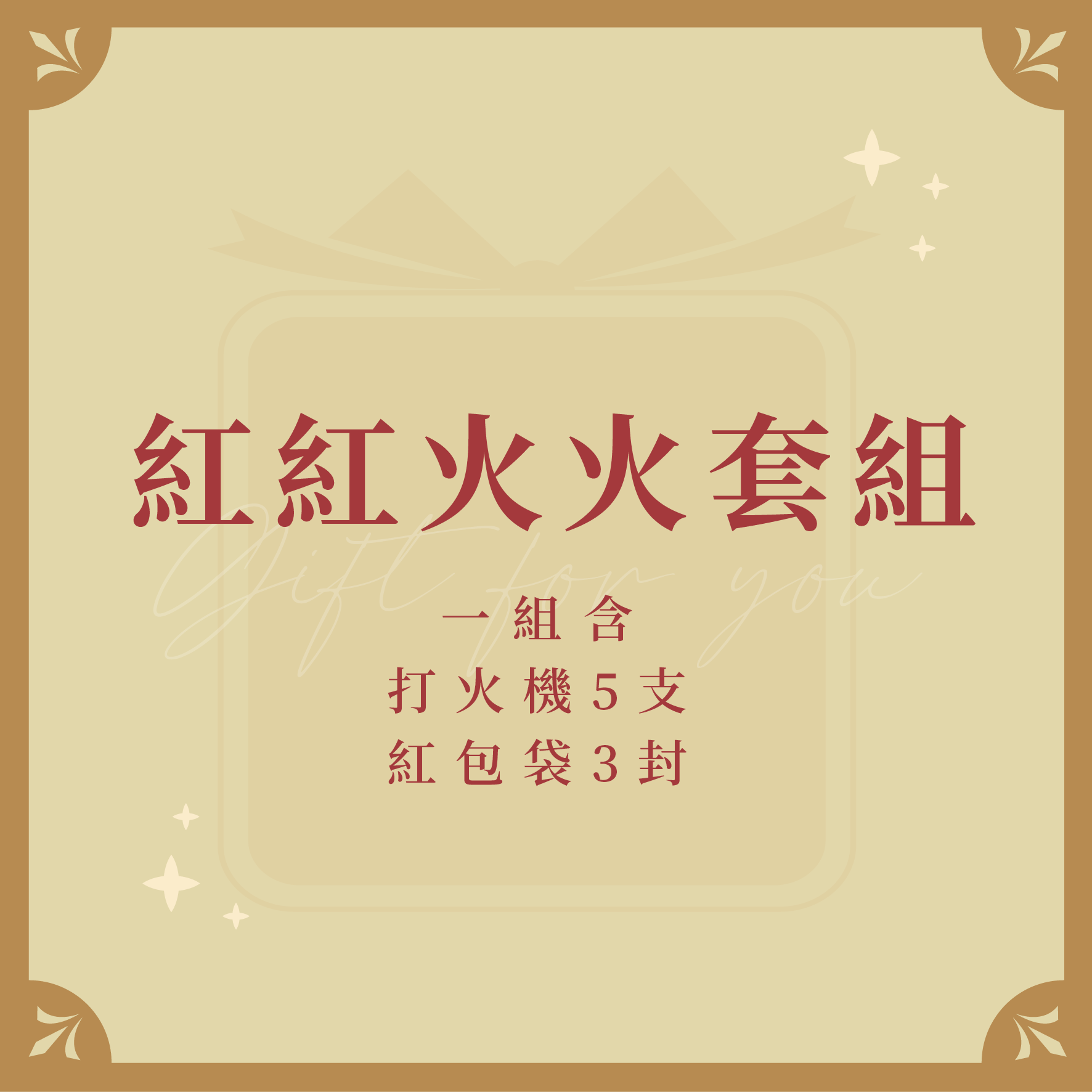 ➊ 紅紅火火套組:打火機 5 支 + 紅包袋 3 封